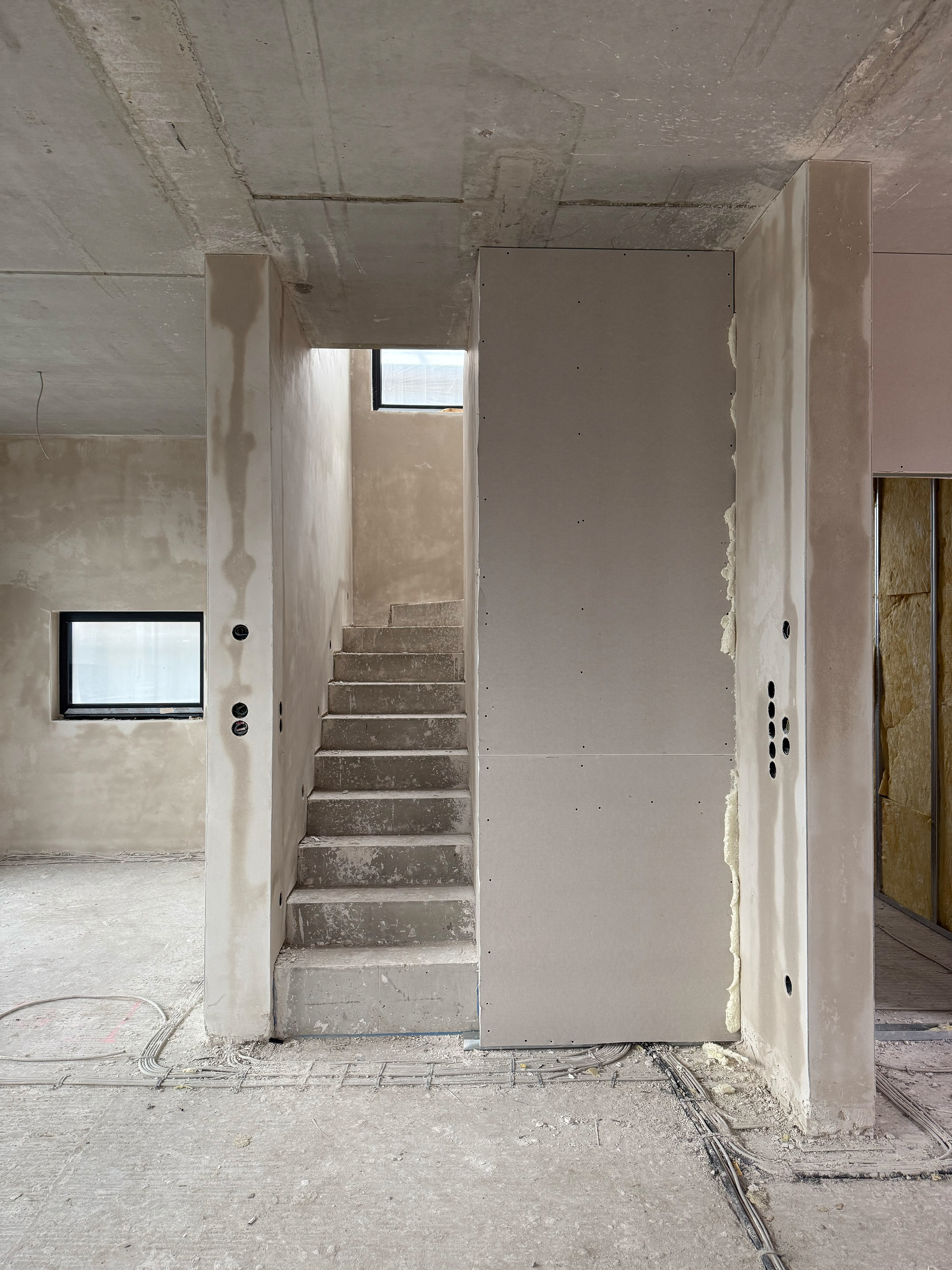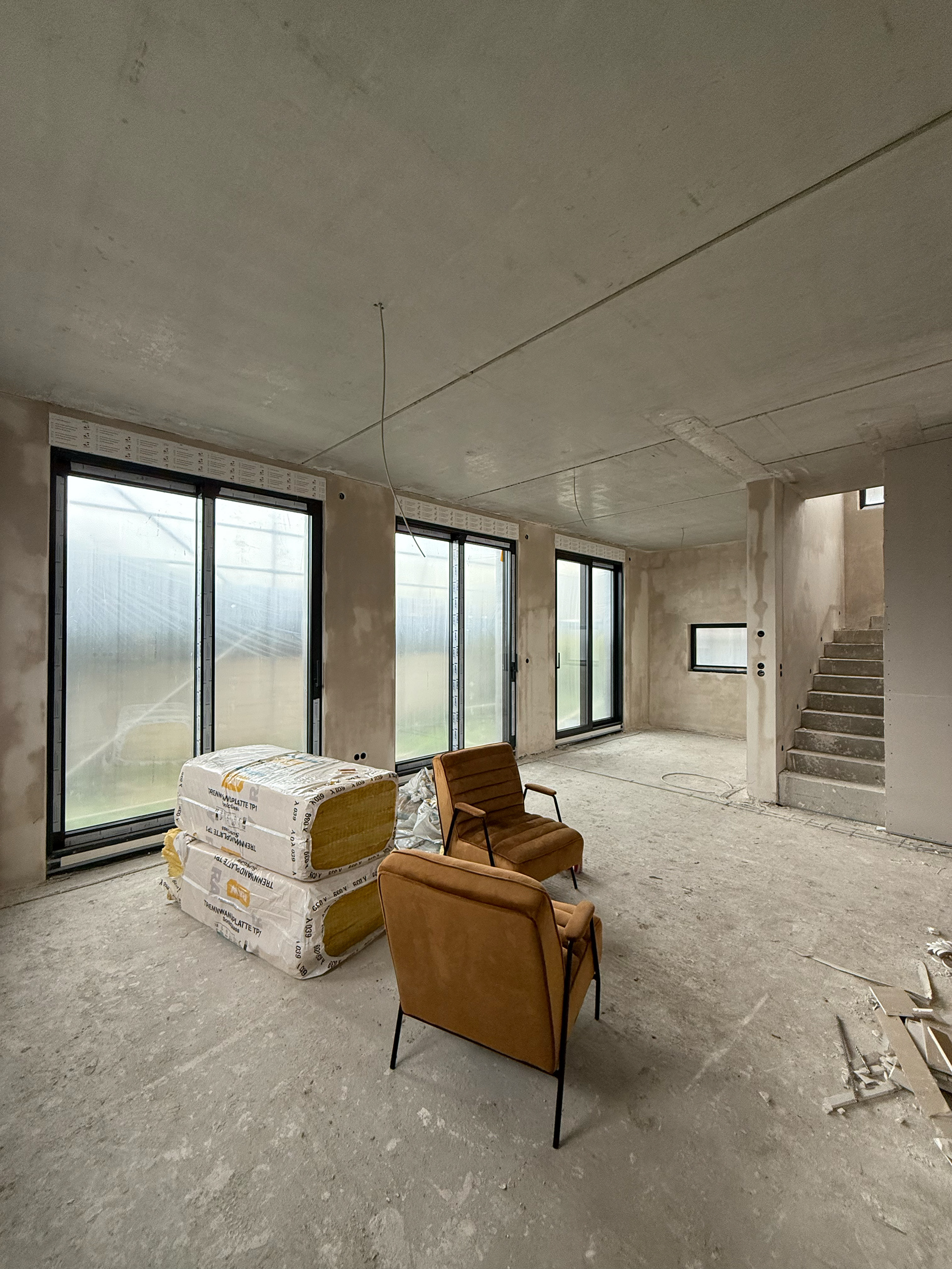 Nach Abschluss der Rohbauarbeiten sind nun auch die Fenster eingebaut. Das Dach wurde ebenfalls gedeckt.